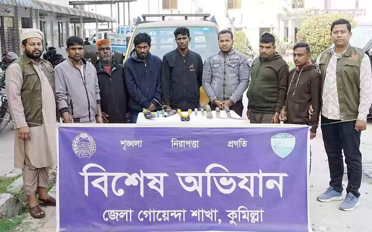 ডিবির ওসি মো. আবদুল্লাহর নেতৃত্বে এসআই রিপন সরকার ও তার সঙ্গীয় ফোর্স গোপন সংবাদের ভিত্তিতে দাউদকান্দি বিশ্বরোড এলাকায় অভিযান চালায়। এসময় ডাকাতদের গ্রেফতার করা হয়।