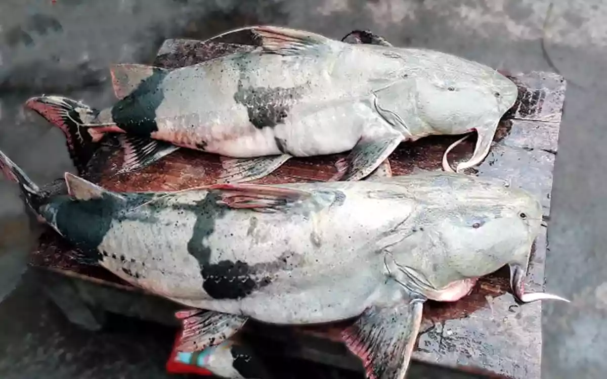 কুমিল্লার বুড়িচং উপজেলার পীরযাত্রাপুর ইউনিয়নের গোবিন্দপুর বাজার এলাকায় গোমতী নদী থেকে বাঘাইড় মাছ দুটি ধরা হয়েছে।
