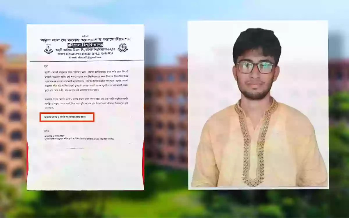 অমৃত লাল দে কলেজ অ্যালামনাই এসোসিয়েশনের সভাপতি ইমন খন্দকার হৃদয় নিজেকে দৈনিক আজকের সময়ের বার্তা নামক একটি পত্রিকার সিনিয়র স্টাফ রিপোর্টার দাবি করে জানান, বিশ্ববিদ্যালয়ে জুলাই-আগস্টে শহীদদের স্মরণে কোন খেলাধুলার আয়োজন আগে করা হয়নি। সেজন্য আমরা সকল শিক্ষক ও কর্মকর্তাদের থেকে স্বেচ্ছায় টাকা তুলছি। আমাদের বাজেট ৩০ হাজার টাকার অধিক। সে জন্য আমরা গণচাঁদা তুলছি। তবে আমরা কাউকে কোন প্রকার টাকার জন্য চাপ দিচ্ছি না।