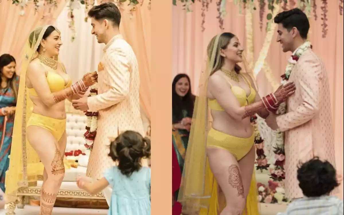 সোশ্যাল মিডিয়ায় ছড়ান ওই ছবিতে একজননারীকে বিয়ের মণ্ডপে হাতে চুড়ি, মাথায় ওড়নার পাশাপাশি হলুদ রঙের বিকিনি পরে পাঞ্জাবি পরা এক ছেলের সাথে দাঁড়িয়ে থাকতে দেখা যায়। ছবিটি পোস্ট করে অনেক ইন্টারনেট ব্যবহারকারীই ‘পাত্রীর’ এমন আচরণের সমালোচনা, কটাক্ষ করতেও ভুলেনি।