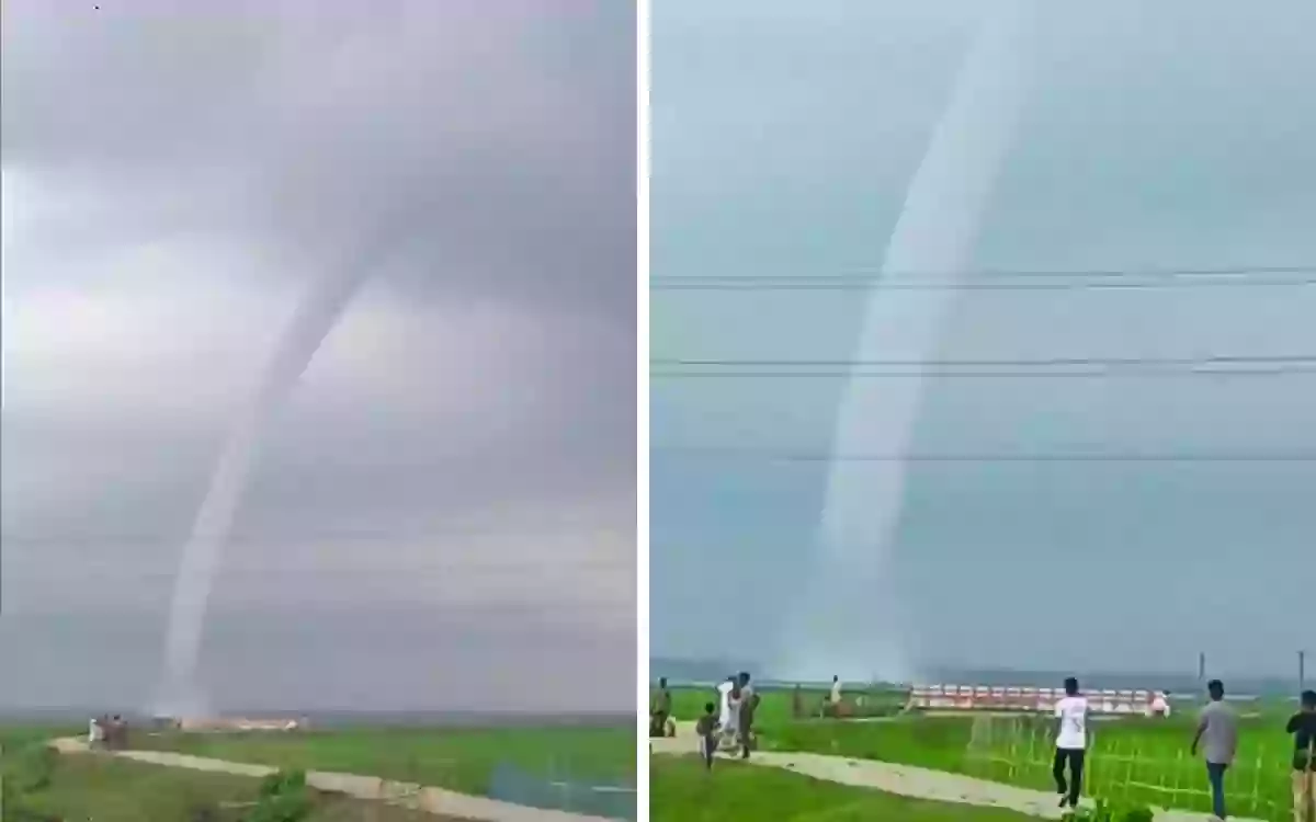 প্রত্যক্ষদর্শী ও স্থানীয় গ্রামবাসী জানান, বিকেল ৫টার দিকে আকাশ মেঘাচ্ছন্ন ছিল এবং গুঁড়ি গুঁড়ি বৃষ্টি হচ্ছিল। আবহাওয়া কিছুটা উষ্ণ ছিল। এর মধ্যেই পাঘাচং ও কাইজলা বিলের ওপর দিয়ে টর্নেডোর সৃষ্টি হয়। এই দৃশ্য দেখে স্থানীয় গ্রামবাসী আতঙ্কিত হয়ে পড়েন এবং অনেকে নিজেদের হাতে থাকা মোবাইল ফোন দিয়ে এর ভিডিও ধারণ করেন।