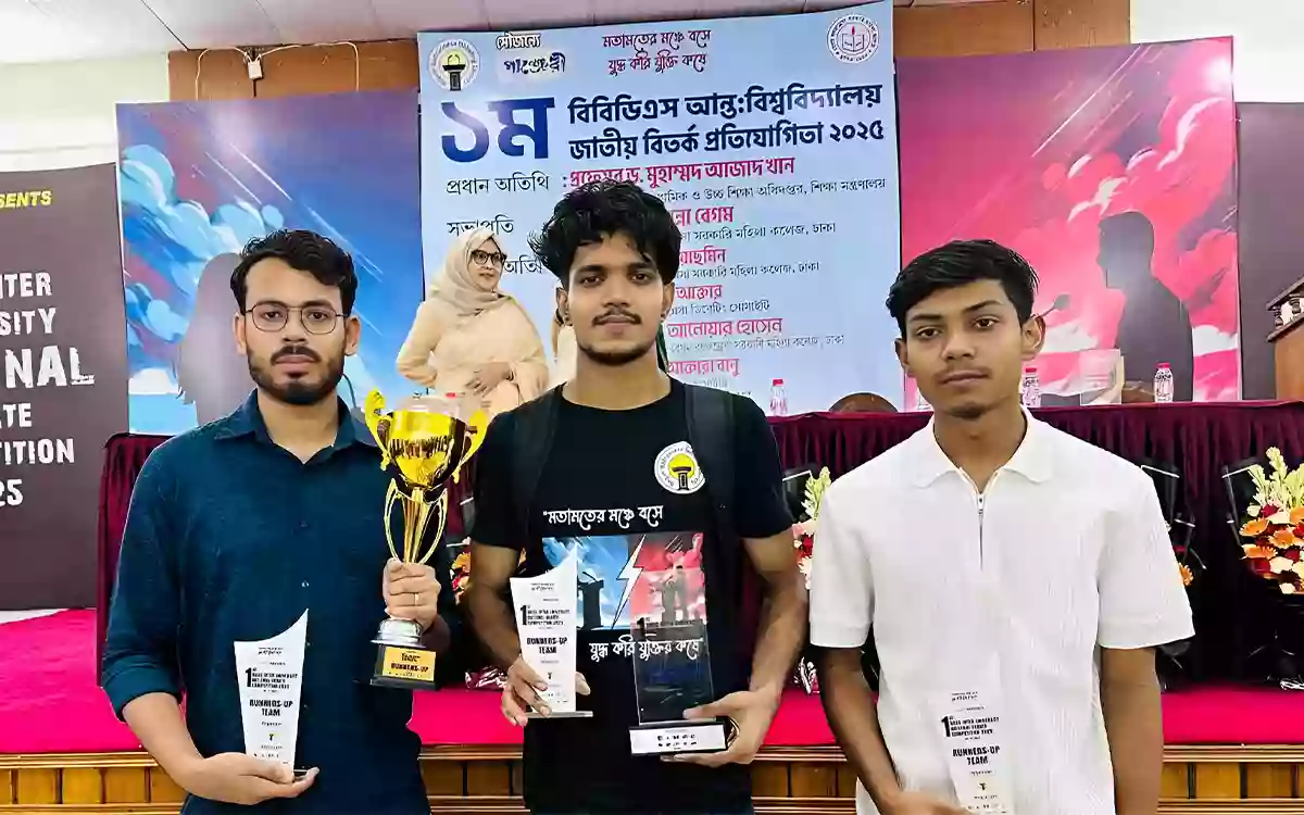 “বেগম বদরুন্নেসা ডিবেটিং সোসাইটি (BBDS)” এর আয়োজনে অনুষ্ঠিত “১ম বিবিডিএস আন্তঃবিশ্ববিদ্যালয় জাতীয় বিতর্ক প্রতিযোগিতা ২০২৫” এ গৌরবময় সাফল্য অর্জন করে রানার-আপ হয়েছে জাহাঙ্গীরনগর বিশ্ববিদ্যালয়।