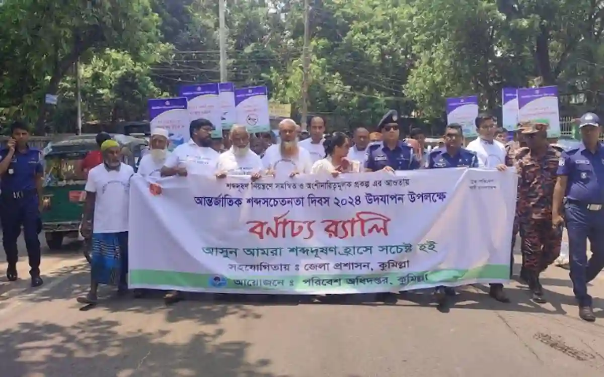 ‘সুস্থ পরিবেশ, স্মার্ট বাংলাদশ’ প্রতিপাদ্যে আজ বুধবার কুমিল্লা জেলা প্রশাসকের সহযোগিতায় ও জেলা পরিবেশ অধিদপ্তরের আয়োজনে কুমিল্লায় আন্তর্জাতিক শব্দ সচেতনতা দিবস-২০২৪ পালিত হয়েছে।