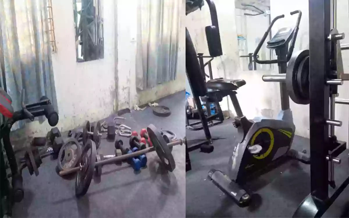 সরেজমিন দেখা গেছে, স্মিথ মেশিন, মাল্টি-জিম, এক্সারসাইজ সাইকেল, ওয়েট বেঞ্চ, ট্রেডমিল, বারবেল, ওয়েট প্লেট, ডাম্বেল ও ওয়াটার কুলারের মধ্যে মাল্টি-জিম ও এক্সারসাইজ সাইকেল আংশিক, আর ট্রেডমিল সম্পূর্ণভাবে নষ্ট। সংশ্লিষ্ট কর্মকর্তারা জানিয়েছেন, যন্ত্রপাতির বেশির ভাগই নষ্ট এবং অনেকগুলো এখন আর মেরামতযোগ্য নয়। এছাড়া ব্যায়ামাগারে রাবার ফ্লোরিং, সেফটি কলার, ডাম্বেল র্যাক, ইলেকট্রিক ট্রেডমিল, স্ট্যান্ডার্ড অলিম্পিক বারবেল ও বাউন্সিং ওয়েট প্লেটসহ প্রয়োজনীয় অনেক সরঞ্জামই নেই।