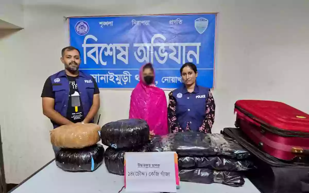 নোয়াখালীর সোনাইমুড়ীতে ১৪ কেজি গাঁজাসহ এক তরুণীকে গ্রেপ্তার করেছে পুলিশ।