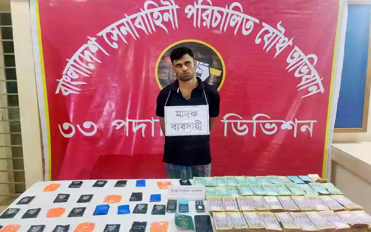 কুমিল্লার চান্দিনায় সেনা ও পুলিশের যৌথ অভিযানে উপজেলার মাদক ব্যবসায়ী মো. মোস্তফা (৩০) কে আটক করা হয়েছে। এসময় তার কাছ থেকে ৩ হাজার ৬৪০পিস ইয়াবা ট্যাবলেট, মাদক বিক্রির ৫২ লক্ষ ৮৮ হাজার টাকা, ৪টি মোবাইল ফোন ও একটি পাসপোর্ট উদ্ধার করা হয়।