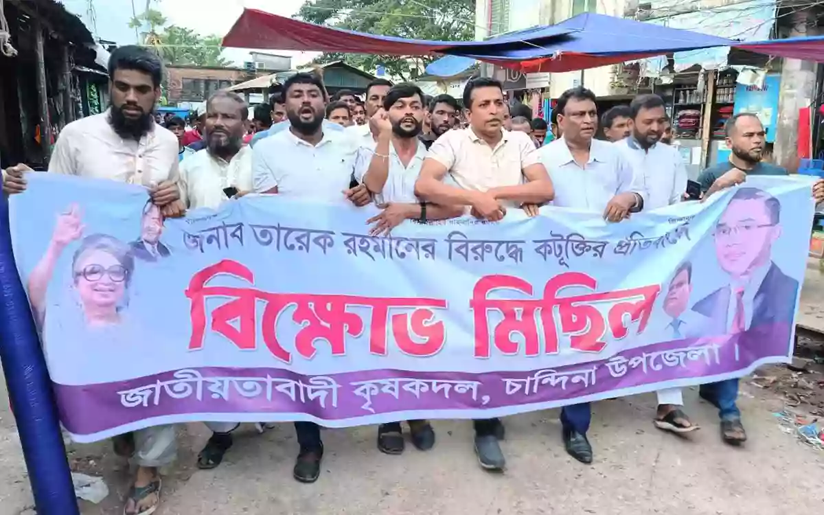 বিএনপির ভারপ্রাপ্ত চেয়ারম্যান তারেক রহমানের বিরুদ্ধে কটুক্তি, ষড়যন্ত্র ও মিথ্যাচারের প্রতিবাদে কুমিল্লায় চান্দিনায় বিক্ষোভ মিছিল ও সমাবেশ করেছে কৃষকদলের নেতাকর্মীরা।