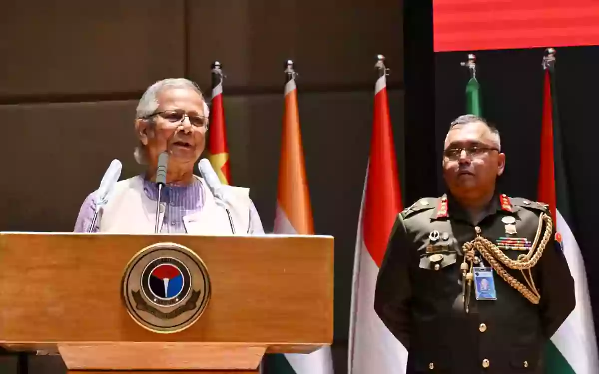 জুলাই গণ-অভ্যুত্থানে সেনাবাহিনীর ভূমিকা স্মরণ করে প্রধান উপদেষ্টা ড. মুহাম্মদ ইউনূস বলেছেন, ‘সেনাবাহিনী সঠিক সময়ে সঠিক সিদ্ধান্ত নিয়েছিল এবং এই কারণে আমি তাদের ভূমিকার ভূয়সী প্রশংসা করি।’