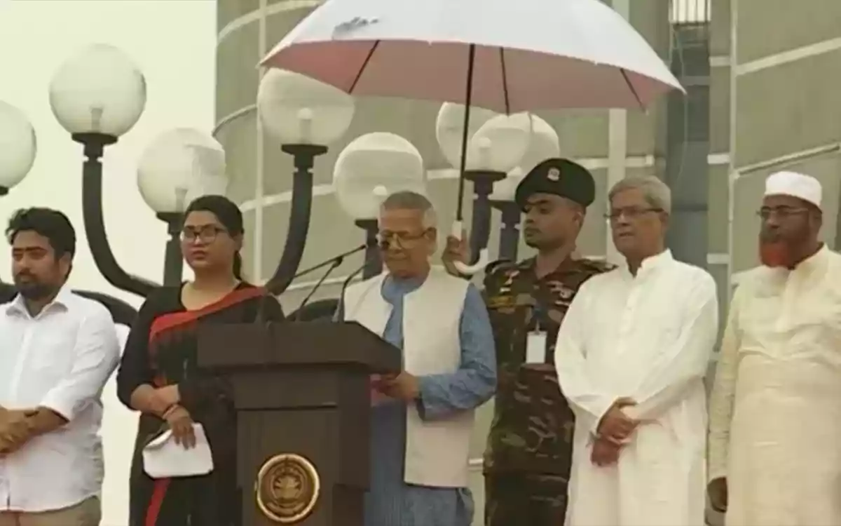 মঙ্গলবার (৫ আগস্ট) বিকেলে রাজধানীর মানিক মিয়া অ্যাভিনিউয়ে আয়োজিত এক অনুষ্ঠানে প্রধান উপদেষ্টা ড. মুহাম্মদ ইউনূস।