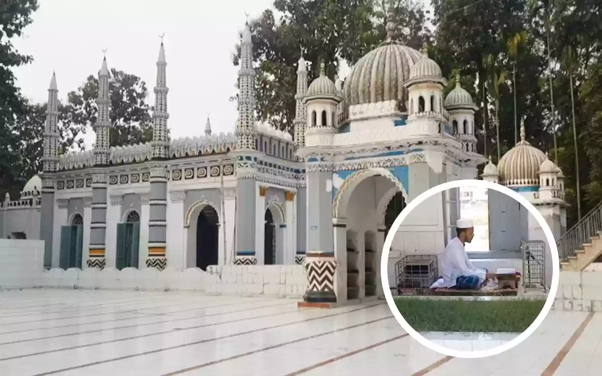 জানা যায়, পীরের নির্দেশনায় কবরের আজাব থেকে মুক্তি পেতে ১৯২৭ সালে সৈয়দ নওয়াব আলী চৌধুরী এ মসজিদে সার্বক্ষণিক কোরআন তেলাওয়াতের ব্যবস্থা করেন। ১৯২৯ সালের ১৭ এপ্রিল মারা যান এই নবাব বাহাদুর। মসজিদের একপাশে তাকে চিরনিদ্রায় শায়িত করা হয়। তার মৃত্যুর পরও চলছে এই কোরআন তেলাওয়াত।