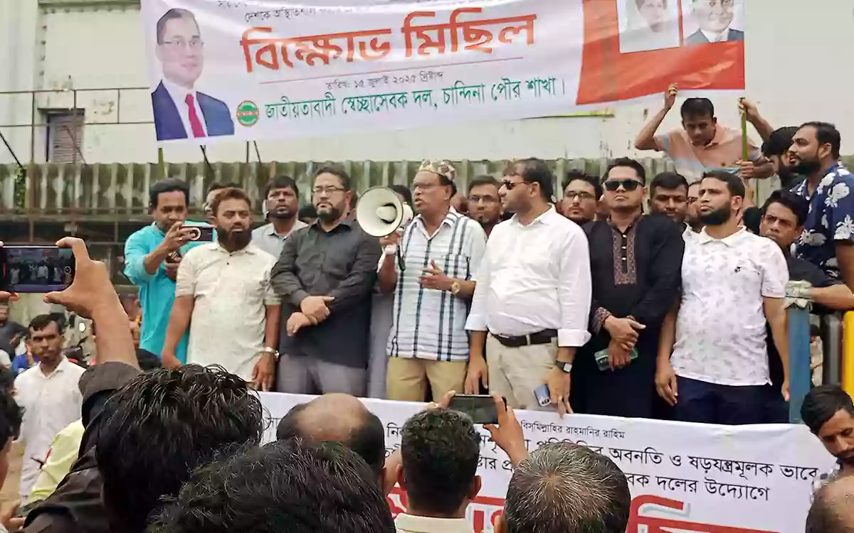 মঙ্গলবার (১৫ জুলাই) বিকেলে ঢাকা-চট্টগ্রাম মহাসড়কর কুমিল্লার চান্দিনা পালকি সিনেমাহল সংলগ্ন এলাকায় ওই বিক্ষোভ মিছিল শেষে মাঠে বিক্ষোভ সমাবেশে প্রধান অতিথির বক্তৃতা করেন জাতীয়তাবাদী স্বেচ্ছাসেবক দলের কেন্দ্রীয় সংসদের সহ-সভাপতি ডি জেড এম হাসান বিন শফিক সোহাগ।