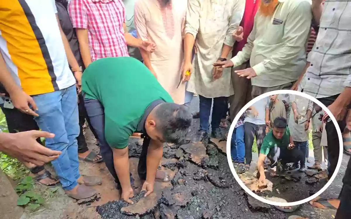 গতকাল সোমবার (২৩ জুন) বিকেলে এই নিম্নমানের কাজের প্রতিবাদে হাসনাত আব্দুল্লাহ ঘটনাস্থলে এসে স্থানীয়দের নিয়ে কার্পেটিং তুলে ধরেন।