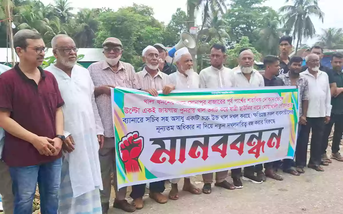 এ সময় ব্যবসায়ীরা জানান, ২০১৯ সালে খাল খননের কথা বলে সোনাপুর জিরো পয়েন্ট থেকে পূর্ব দক্ষিণ দিকে শতাধিক দোকান ভেঙ্গে দেয় জেলা প্রশাসন। বৃহত্তর স্বার্থে ব্যবসায়ীরা প্রশাসনের এমন উদ্যোগে সহযোগীতা করছে। কিন্তু এরপর থেকে খালি জায়গা নামে বেনামে বেদখল হতে থাকে।