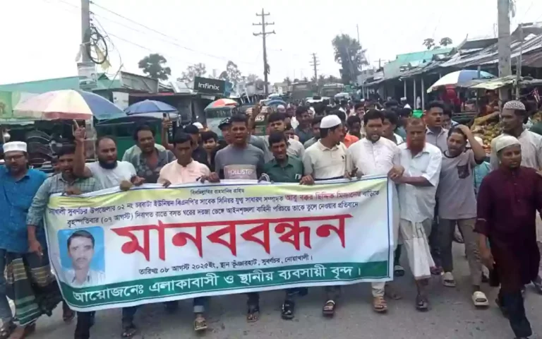 নোয়াখালীতে ব্যবসায়ীকে মিথ্যা মামলায় ফাঁসানোর প্রতিবাদে মানববন্ধন-বিক্ষোভ
