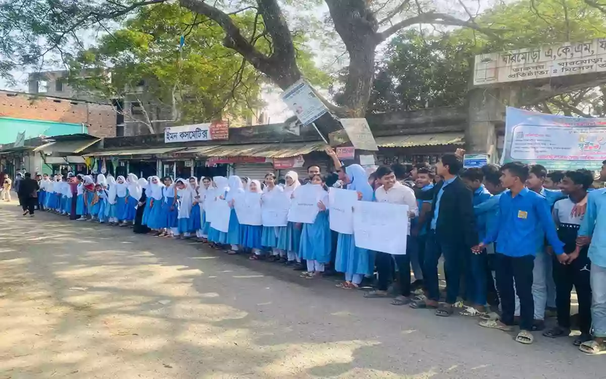 বিক্ষোভ মিছিল ও মানববন্ধনে শিক্ষার্থীরা জানান, আমরা প্রত্যন্ত এলাকা থেকে কয়েক কিলোমিটার পথ পাড়ি দিয়ে এই বিদ্যালয়ে এসে পড়াশোনা করছি। আবার আমাদের বিদ্যালয় থেকে আরো ছয় কিলোমিটার দূরবর্তী উপজেলা সদরে গিয়ে এসএসসি পরীক্ষা দিতে হবে। এতে আমাদের অনেক কষ্ট সহ্য করতে হবে। তাই আমাদের বিদ্যালয়ে এসএসসি পরীক্ষার কেন্দ্র দেওয়ার জন্য সংশ্লিষ্ট কর্তৃপক্ষের নিকট জোর দাবি জানাচ্ছি।