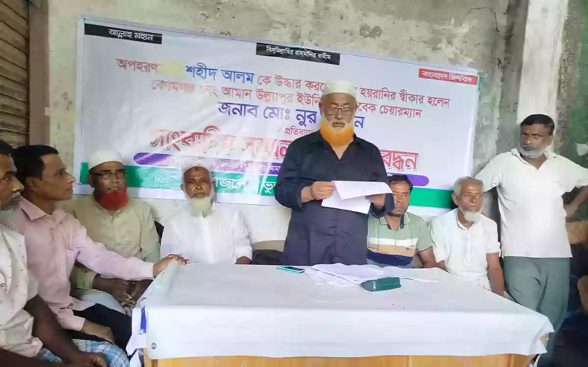সংবাদ সম্মেলনে নূর রহমান জানান, ২০২০ সালের ফেব্রুয়ারিতে কাতার প্রবাসী শহীদ আলম দেশে ফেরার পথে ফেনীর লালপুর এলাকায় সন্ত্রাসীদের হাতে আটক হন। তারা শহীদ আলমকে মারধর করে এবং মুক্তিপণ দাবি করে। শহীদ আলম মুঠোফোনে তাকে উদ্ধারের অনুরোধ করলে তিনি স্থানীয় ইউপি মেম্বারসহ আরও দু’জনকে নিয়ে ঘটনাস্থলে যান। সেখানে সন্ত্রাসীরা তাদেরও মারধর করে, রাতভর আটক রাখে এবং সাদা চেকে স্বাক্ষর নিতে বাধ্য করে। পরবর্তীতে ওই চেকের মামলা দেখিয়ে গত ২৯ জুলাই তাকে নিজ এলাকা থেকে গ্রেপ্তার করা হয়।