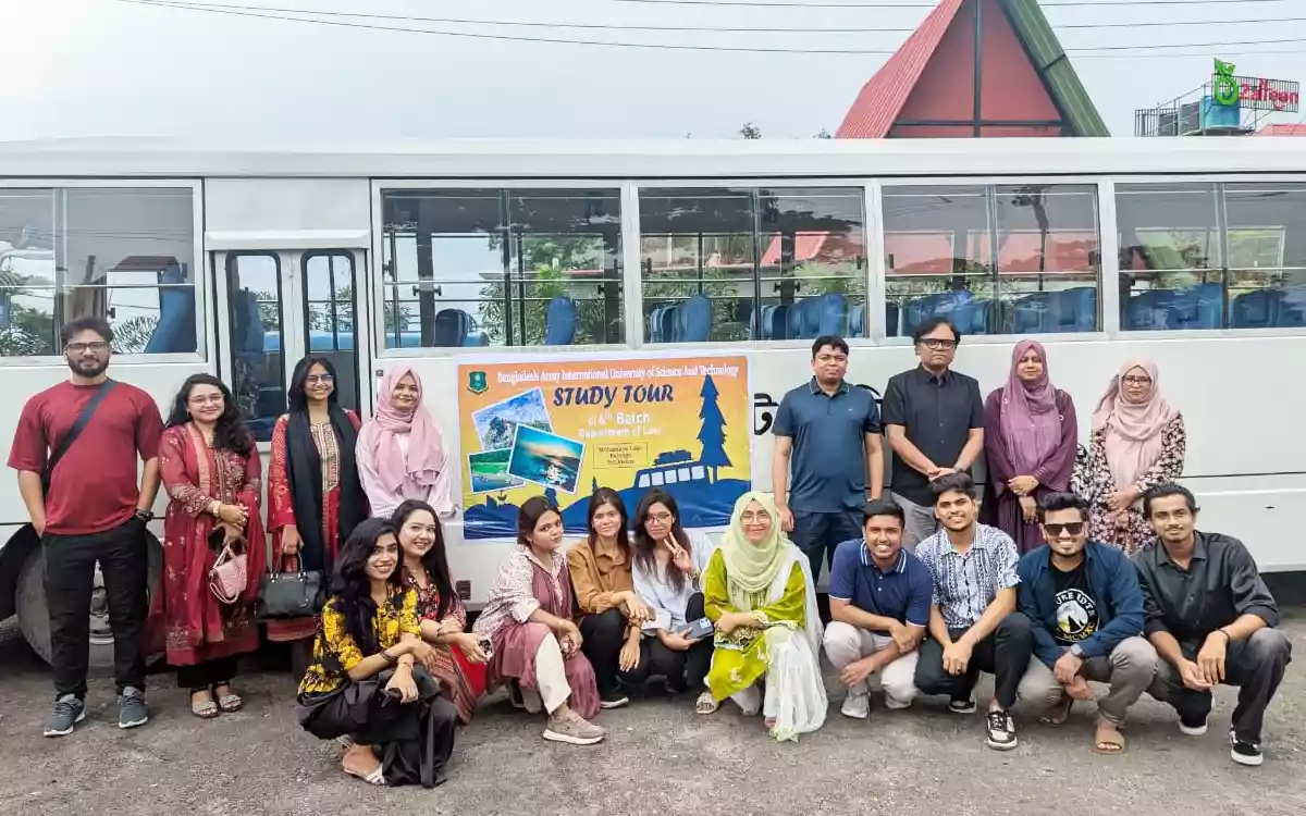 বাংলাদেশ আর্মি ইন্টারন্যাশনাল ইউনিভার্সিটি অব সায়েন্স অ্যান্ড টেকনোলজি (বাইউস্ট)-এর আইন বিভাগের ৬ষ্ঠ ব্যাচের চূড়ান্ত বর্ষের শিক্ষার্থীদের শিক্ষা সফর গতকাল ৬ আগস্ট ২০২৫, বুধবার আনন্দঘন পরিবেশে সম্পন্ন হয়েছে।