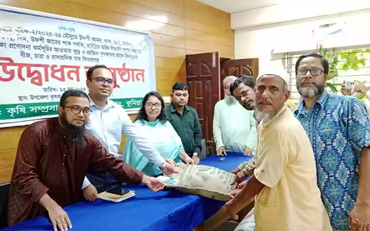 কুমিল্লার বুড়িচং উপজেলায় কৃষকদের মাঝে কৃষি উপকরণ বিতরণ কর্মসূচির শুভ উদ্বোধন করা হয়েছে। এই উদ্যোগের লক্ষ্য কৃষকদের আধুনিক ও টেকসই কৃষি ব্যবস্থার প্রতি আগ্রহী করে তোলা, ফলদ ও ভেষজ গাছ রোপণের মাধ্যমে পরিবেশের ভারসাম্য রক্ষা করা এবং নিরাপদ খাদ্য উৎপাদন নিশ্চিত করা।