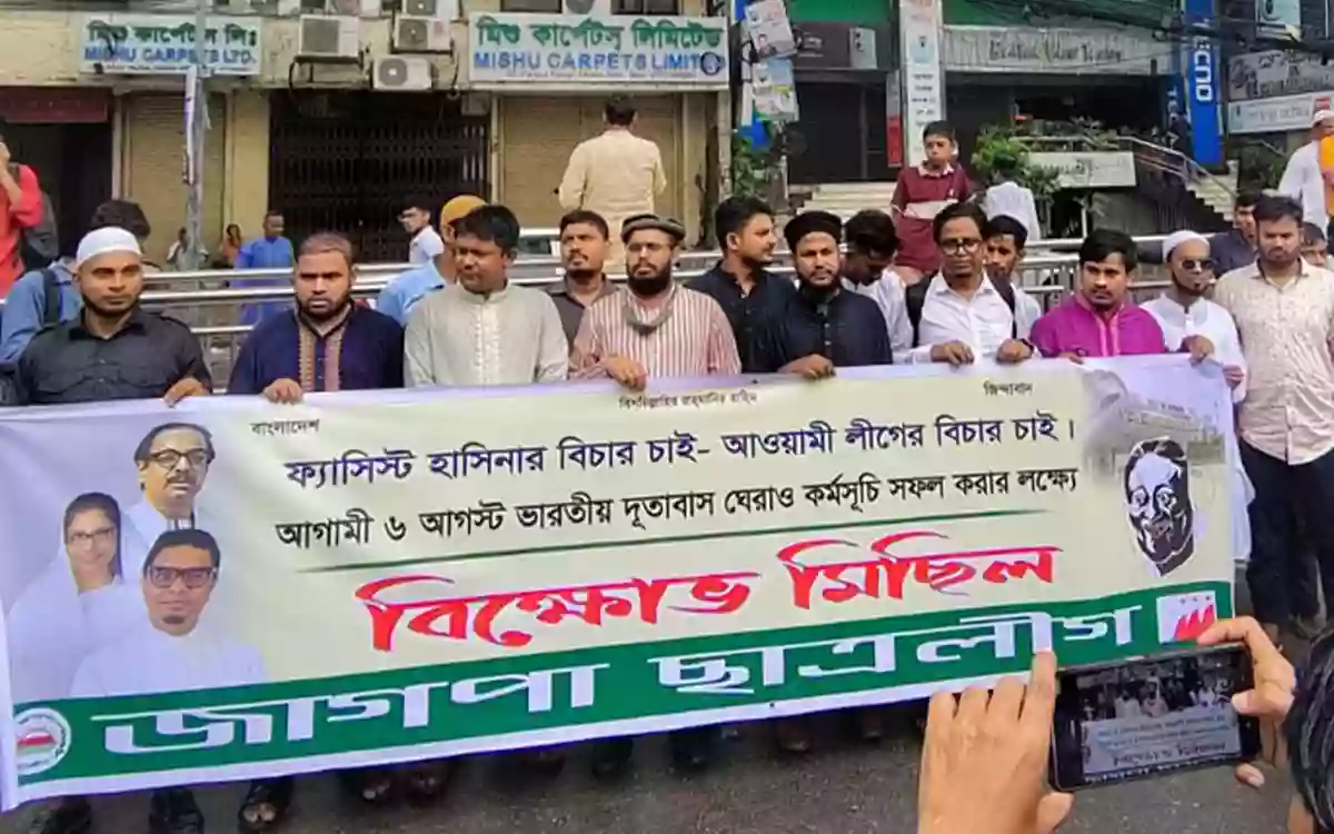 জুমার নামাজের পর জাগপা ছাত্রলীগের নেতাকর্মীরা উত্তর গেটে জড়ো হয়ে বিভিন্ন স্লোগান দেন। সংক্ষিপ্ত সমাবেশে জাগপা ছাত্রলীগের সভাপতি আব্দুর রহমান ফারুকী বলেন, “শেখ হাসিনাকে ফেরত পাঠানোর দাবিতে আমাদের ১২ দলীয় জোটের পক্ষ থেকে ভারতীয় হাইকমিশন ঘেরাওয়ের কর্মসূচি ঘোষণা করা হয়েছে। এই কর্মসূচি সফল করতে আজ আমরা এই প্রস্তুতিমূলক সমাবেশ ও মিছিল করছি।”