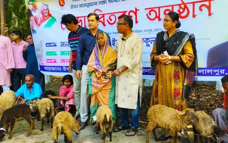 নাটোরে ক্ষুদ্র নৃ-গোষ্ঠীর ১০০ পরিবারের মাঝে ভেড়া বিতরণ