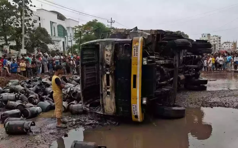 ব্রাহ্মণবাড়িয়ায় সিলিন্ডারবোঝাই ট্রাক খাদে, বিকট শব্দে বিস্ফোরণে আতঙ্ক