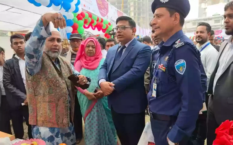 “টাউনহলের তথ্য মেলায় ভ্রাম্যমান ল্যাবরেটরির মাধ্যমে ফলমূলে ফরমালিনের উপস্থিতি পরীক্ষা করছে বিএসটিআই”