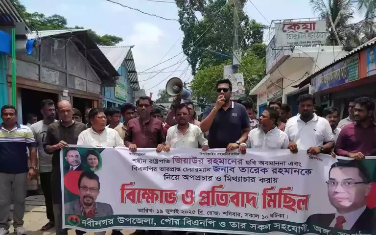 নবীনগরে জিয়ার ছবি অবমাননা ও তারেক জিয়াকে কটুক্তির প্রতিবাদে জসিমের নেতৃত্বে বিক্ষোভ মিছিল